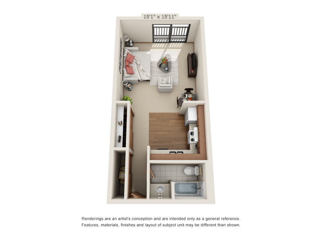 Studio, 1 Bath, 520 sq ftModel Gallery