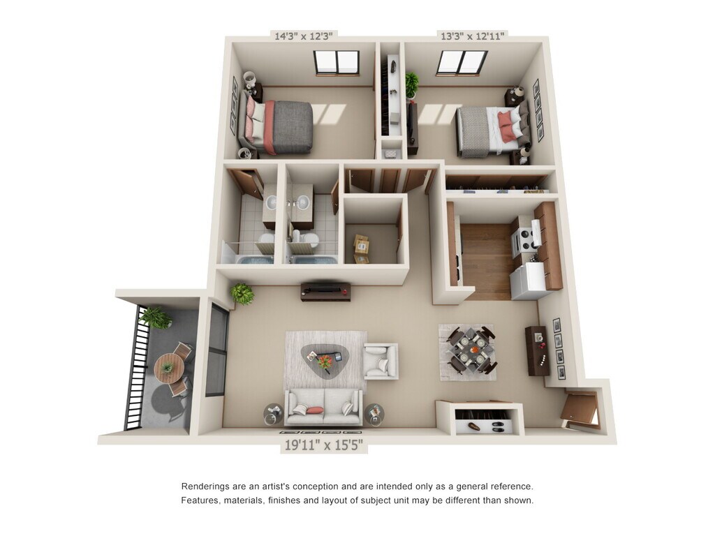 2 Beds, 2 Baths, 950-1150 sq ftPlus FeesAvailable NowModel Gallery