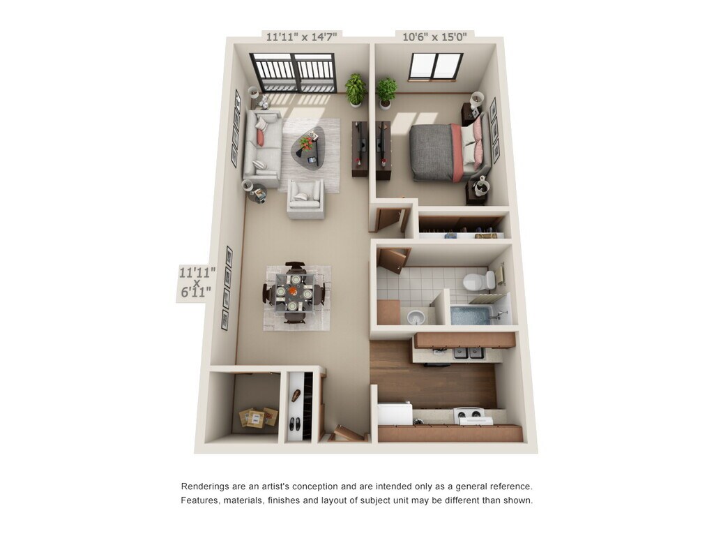 1 Bed, 1 Bath, 750-760 sq ftPlus FeesAvailable NowModel Gallery