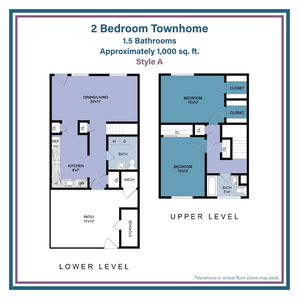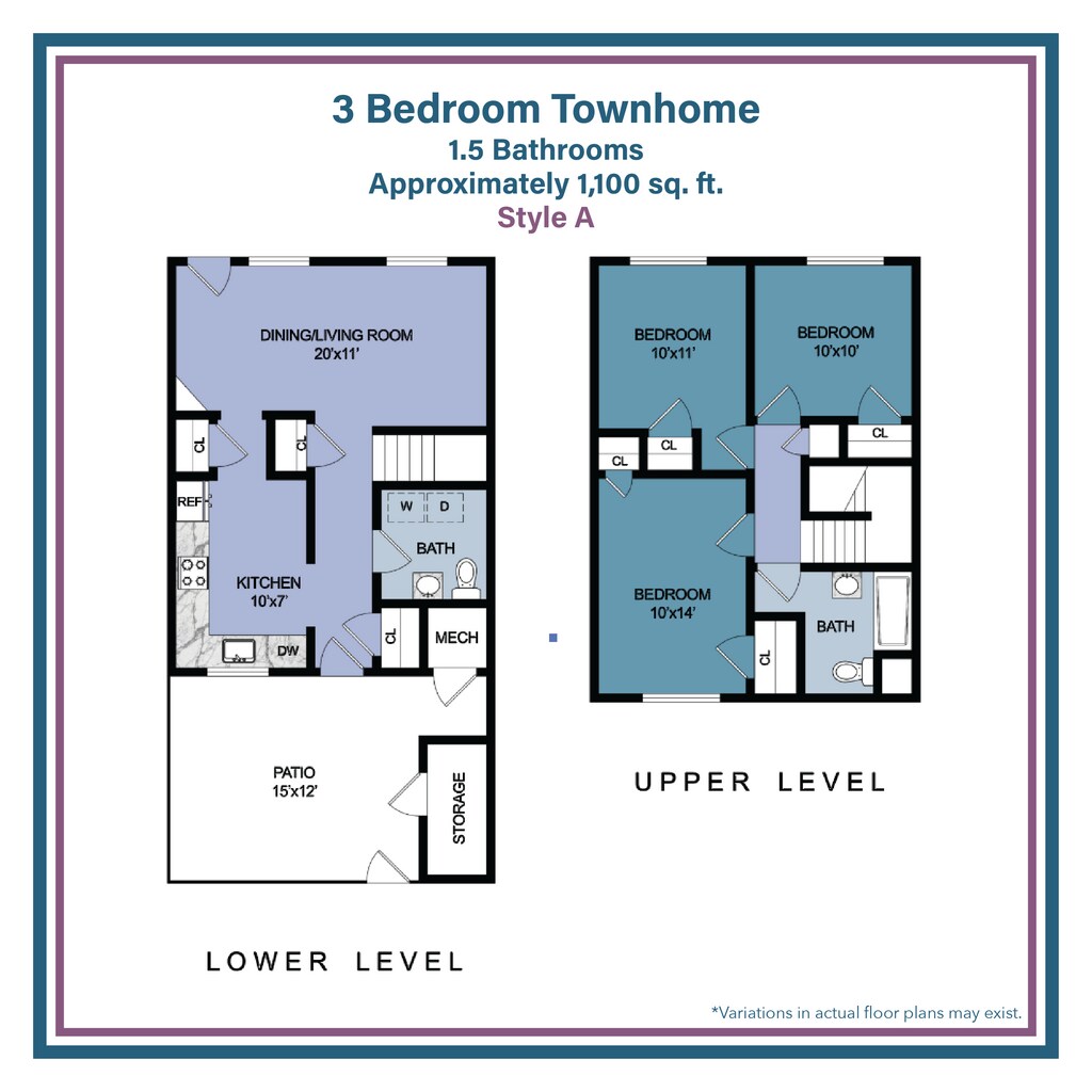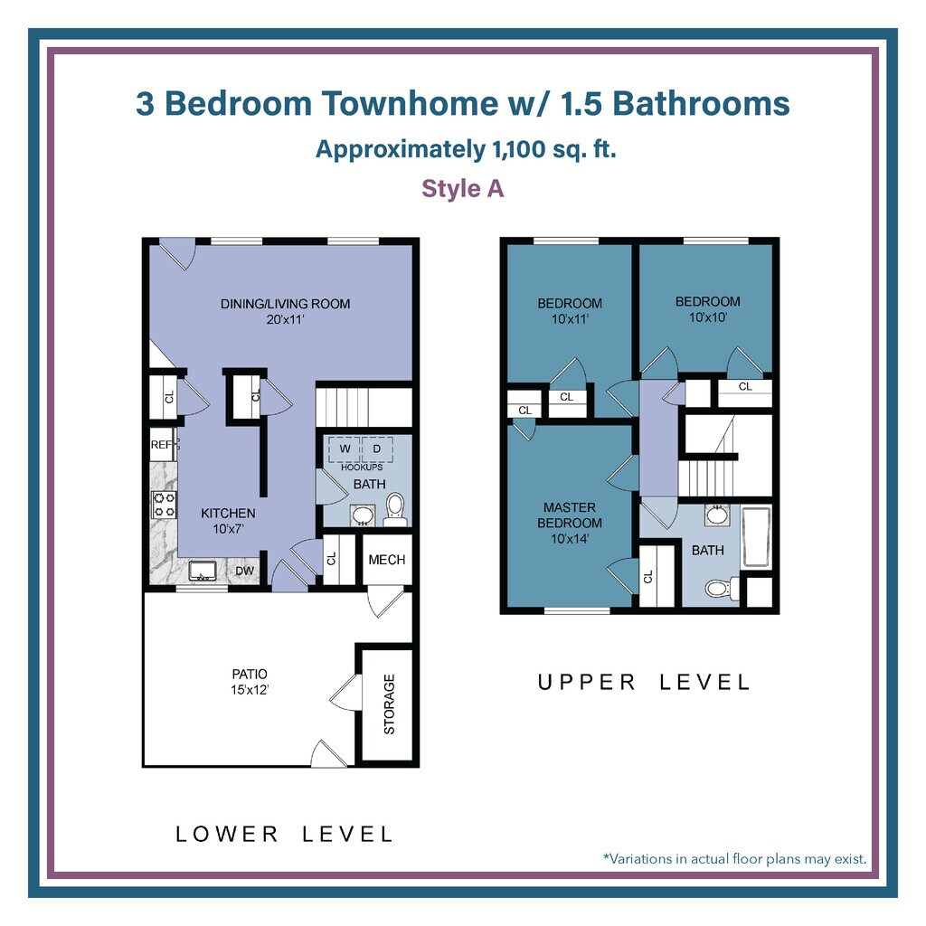 2 Bedrooms, 1.5 Bathrooms - Bi-Level Style A - Floorplan 10 2 Bedrooms, 1 Bathroom - Ranch Style A