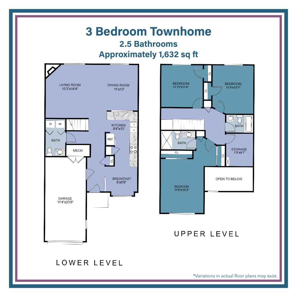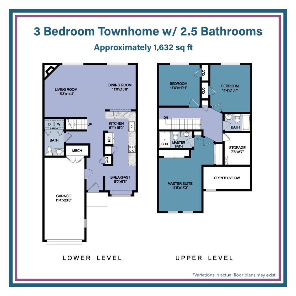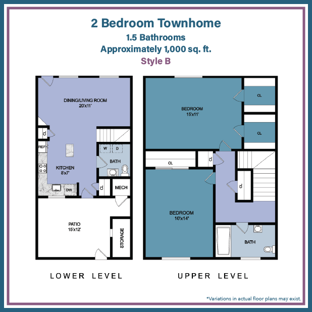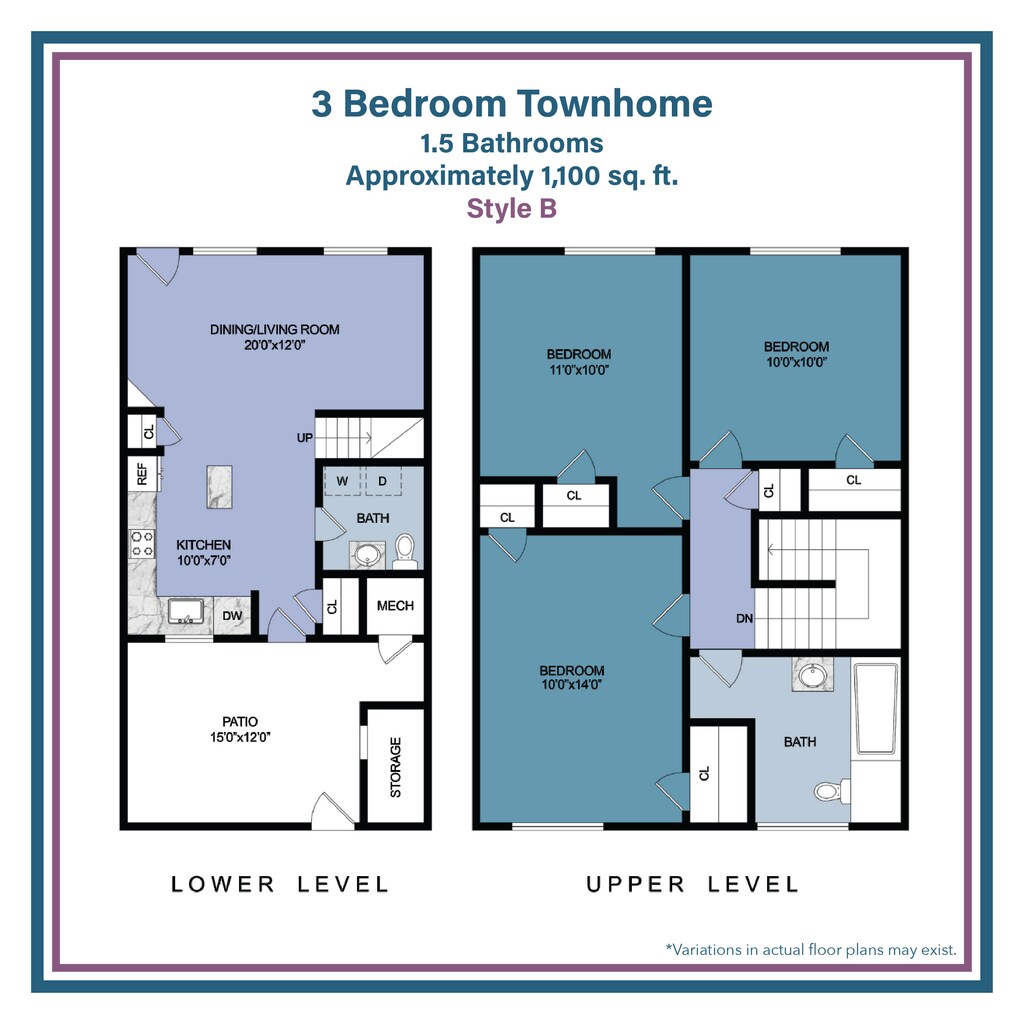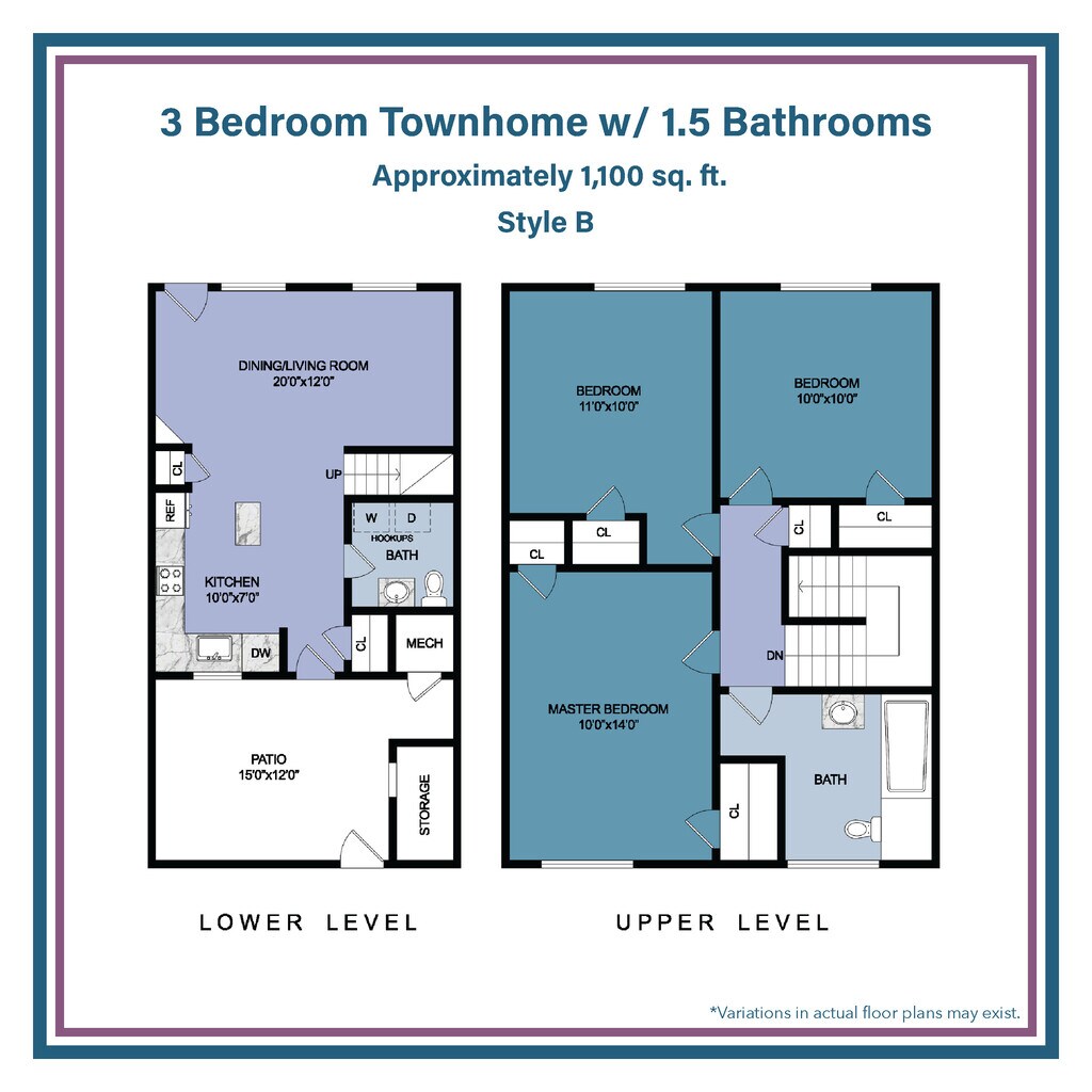 2 Bedrooms, 1.5 Bathrooms - Bi-Level Style B - Floorplan 3 ![]()