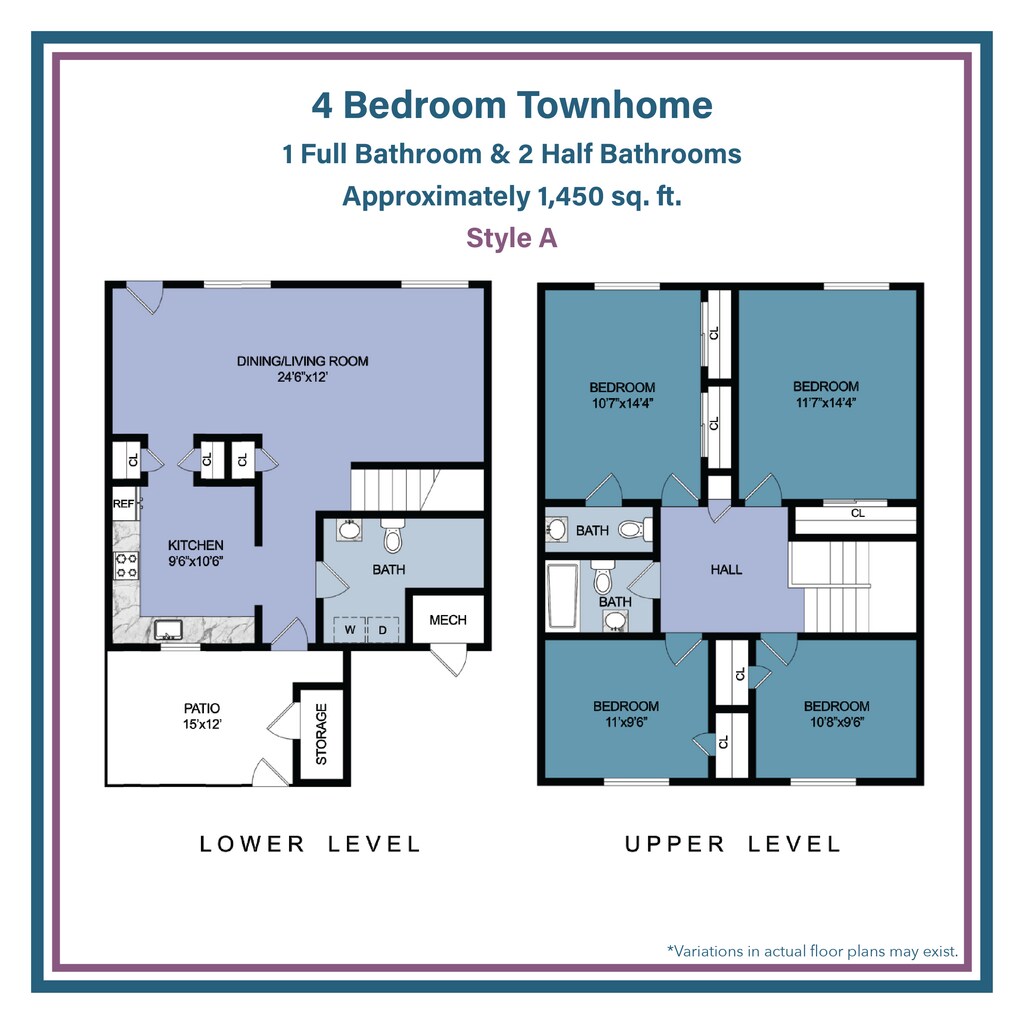2 Bedrooms, 1.5 Bathrooms - Bi-Level Style A - Floorplan 4 ![]()