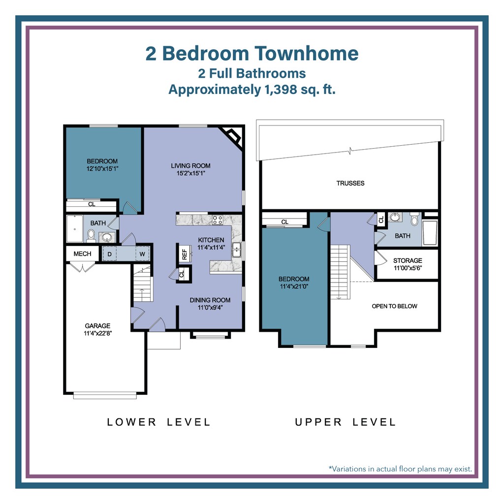 2 Bedrooms, 1.5 Bathrooms - Bi-Level Style B - Floorplan 2 ![]()