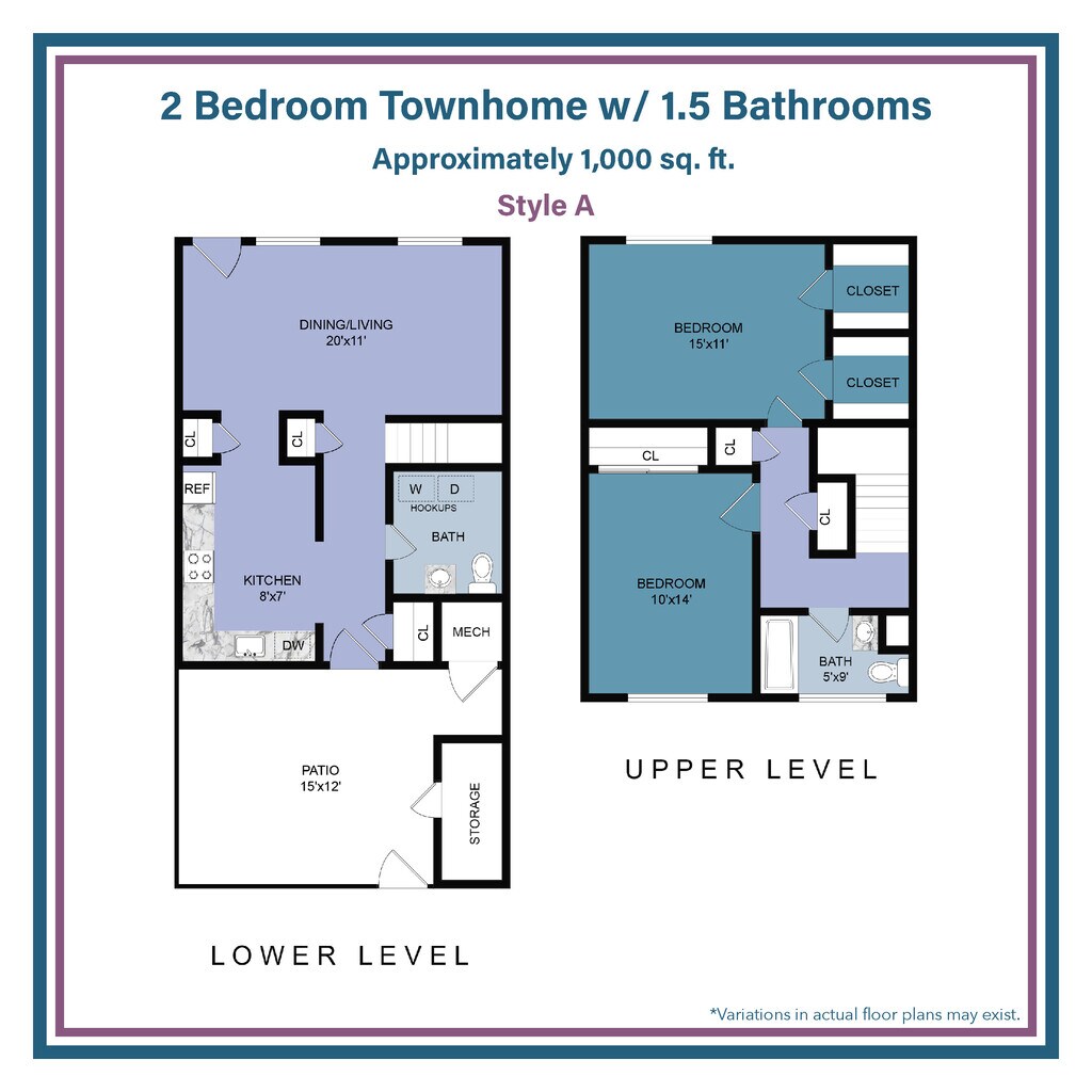 2 Bedrooms, 1.5 Bathrooms - Bi-Level Style A - Floorplan 5 ![]()
