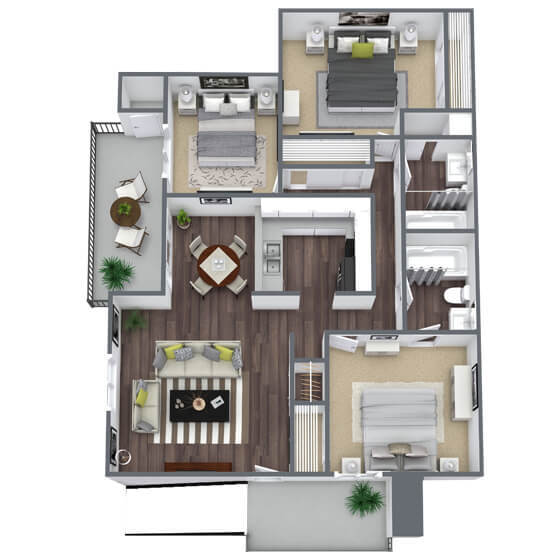 2 Beds, 2 Baths, 1015 sq ftAvailable NowModel Gallery