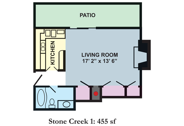 Apartment Model: Stone Creek 1From $855Studio, 1 Bath, 455 sq ftAvailable NowStone Creek 1 - Floorplan 1 Stone Creek 1 - Floorplan 2 Whispering Creek 1