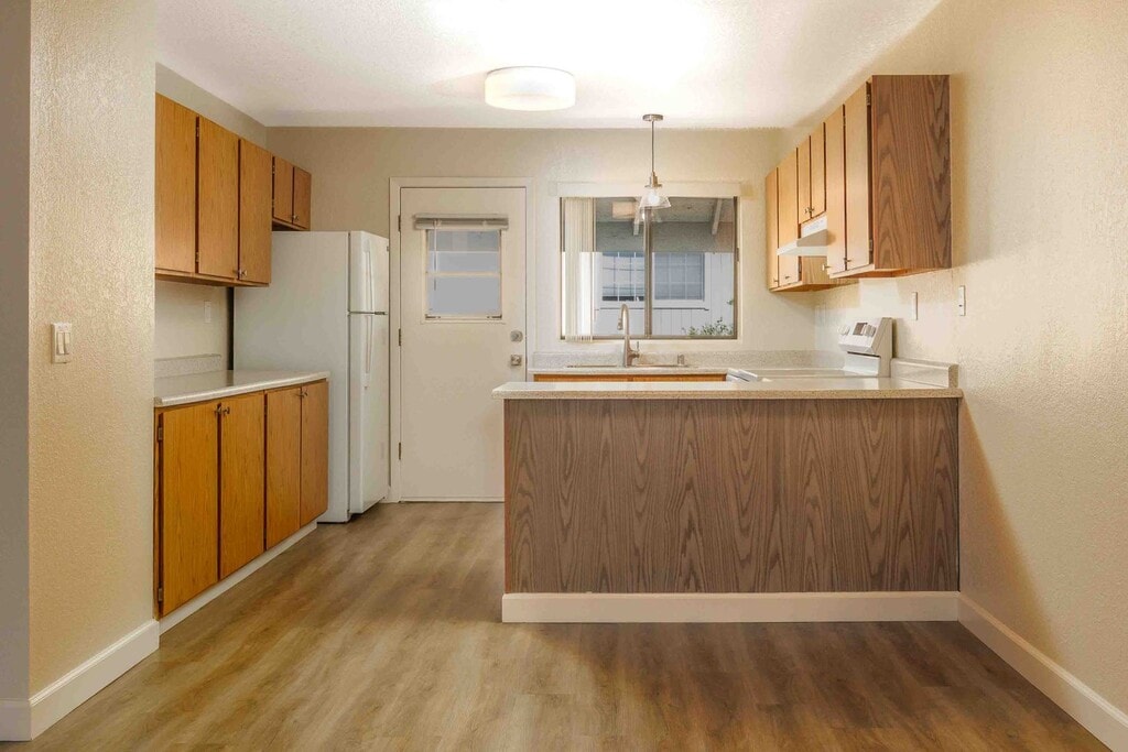 Our two-bedroom, one-bath apartments offer a welcoming, functional layout ideal for comfortable everyday living. The spacious kitchen includes modern appliances, plank or tile flooring, and ample cabinetry, opening to a bright living area with large windows that fill the home with natural light. Bedrooms feature generous closet space, while the well-appointed bathroom includes updated fixtures and clean, simple finishes. With thoughtful design, air conditioning, and a calm residential setting, these homes provide an easy balance of comfort, convenience, and value in Santa Rosa’s Larkfield/Wikiup neighborhood.