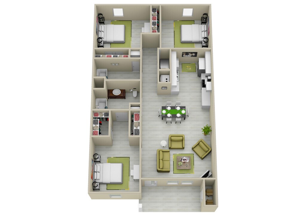 3Be - Floorplan 1 Apartment Unit: 10DApartment Model: 3Be3 Bedroom, 2 Bath, 1435 sq ftAvailable NowFloorplan 3B