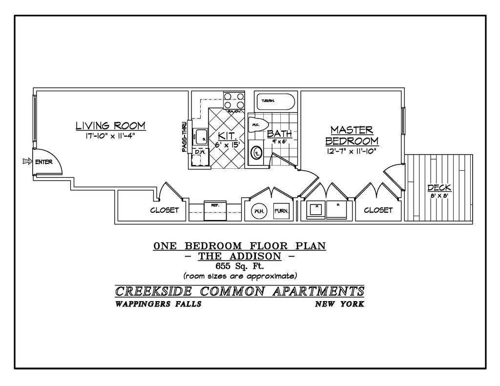 Welcome to Creekside Commons! Built in 2015, we have 47 - 1 and 2 bedroom apartments of varying sizes to offer, some with dens. We're less than 10 minutes from Route 9, but still only minutes from Reese Park, a 30-acre nature preserve and the cornerstone of the Wappinger Greenway Trail. Our community offers both convenience and serenity. Each apartment has its own private entrance, in-unit washer and dryer, independently-controlled heating and air conditioning HVAC system, secure on-site storage available, and designated parking spaces. Send us an inquiry or call us today to learn more about joining our community!