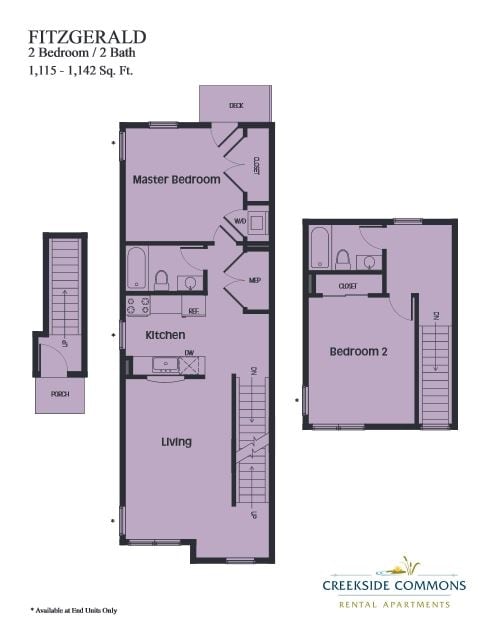 Creekside Commons offers 1 to 2 Bedroom apartments having 678–1,293 sqft. Here is the current pricing and availability: