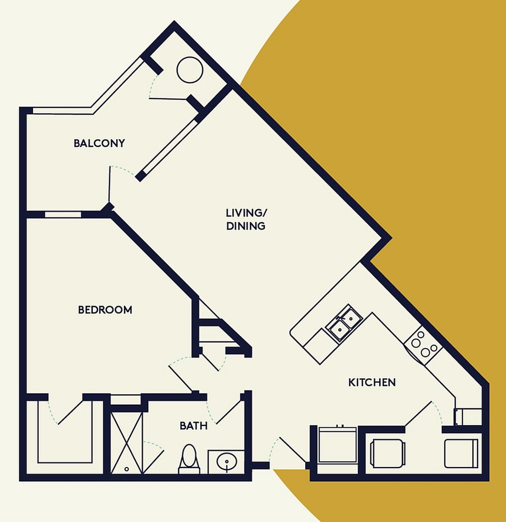 Apartment Model: A1-ALT1From $1,2821 Bedroom, 1 Bath, 689 sq ftAvailable Now![]()