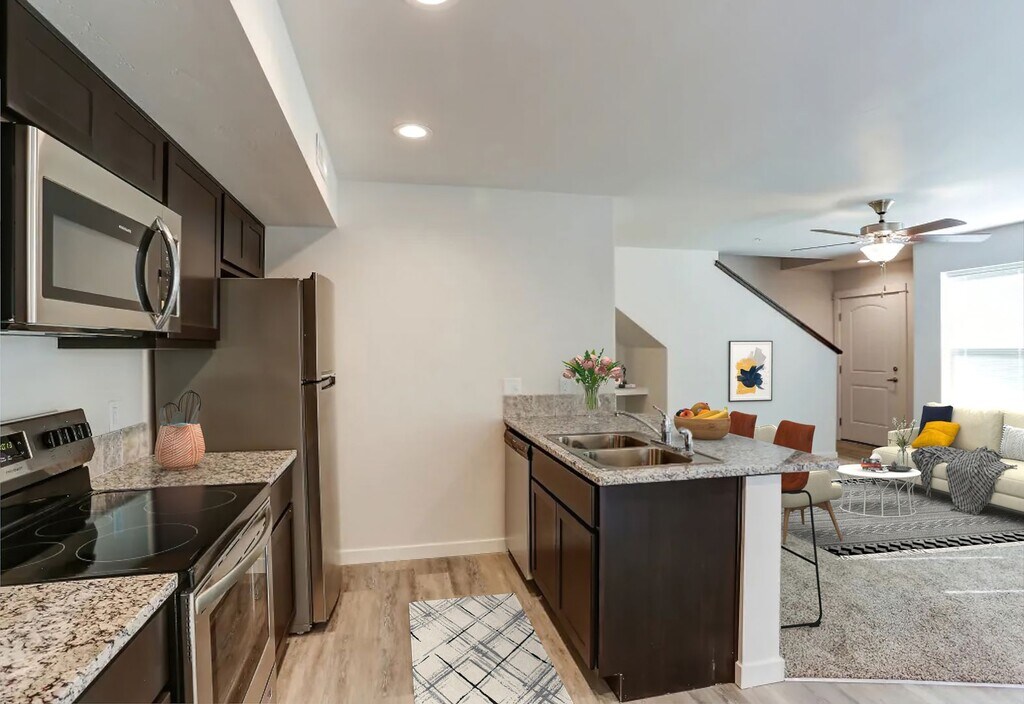 Welcome to Creekside in Twin Falls, ID! The Creekside Townhomes are located off of Cheney Dr. W and Creekside Way. The location is amazing as you are near the hospital, shopping, dining, and entertainment. Each townhome is approximately 1000 square feet with a very open and modern layout. The living area is very cozy and the kitchen has a breakfast bar looking into the living room, the dining room is right off of the kitchen with a door leading out to your own private patio! The kitchen is equipped with top-of-the-line brand new energy star appliances, granite countertops, beautiful dark espresso cabinets, dishwasher, stove/oven, microwave, refrigerator, and plenty of shelving to help keep you organized! Submit an application at ! Disclaimer: We believe this information to be reliable, however, should not be relied on solely in making rental decisions. Square footage, unit photos, and listed amenities are based on similar units and not always the exact unit available. All available units are subject to be rented until the holding deposit is paid. All availability dates are not guaranteed and subject to change.