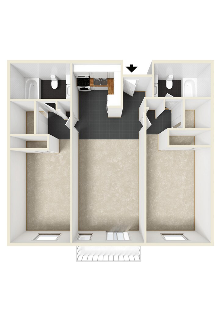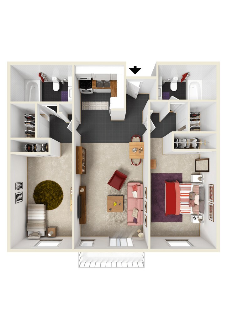 2 Bedroom 2 Bath - Floorplan 2