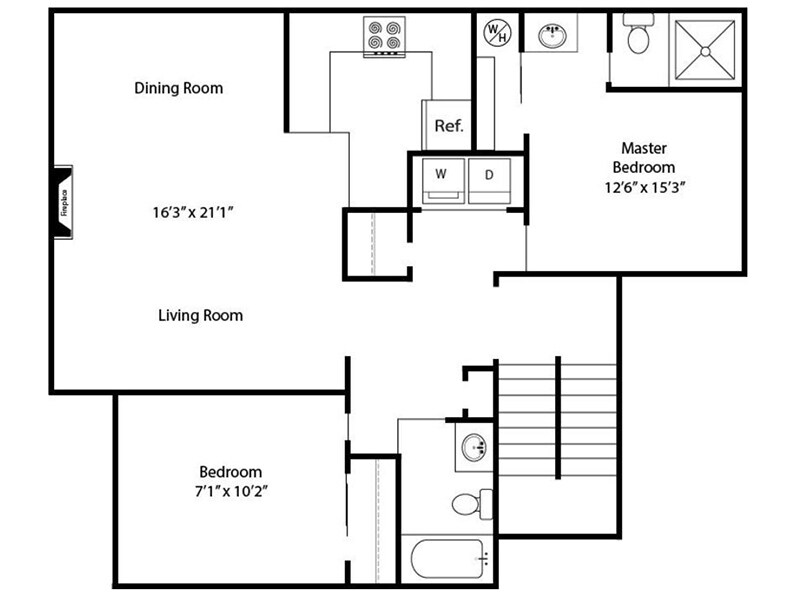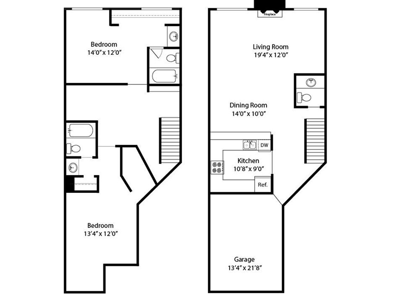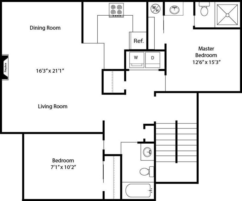 2 Bedroom 2 Bathroom Apartment - Floorplan 1 2 Bedroom 2.5 Bathroom Townhome