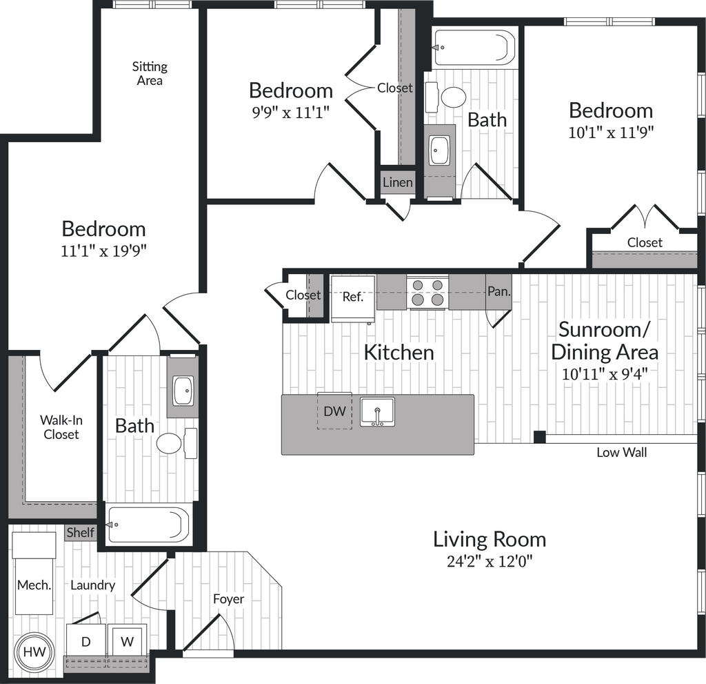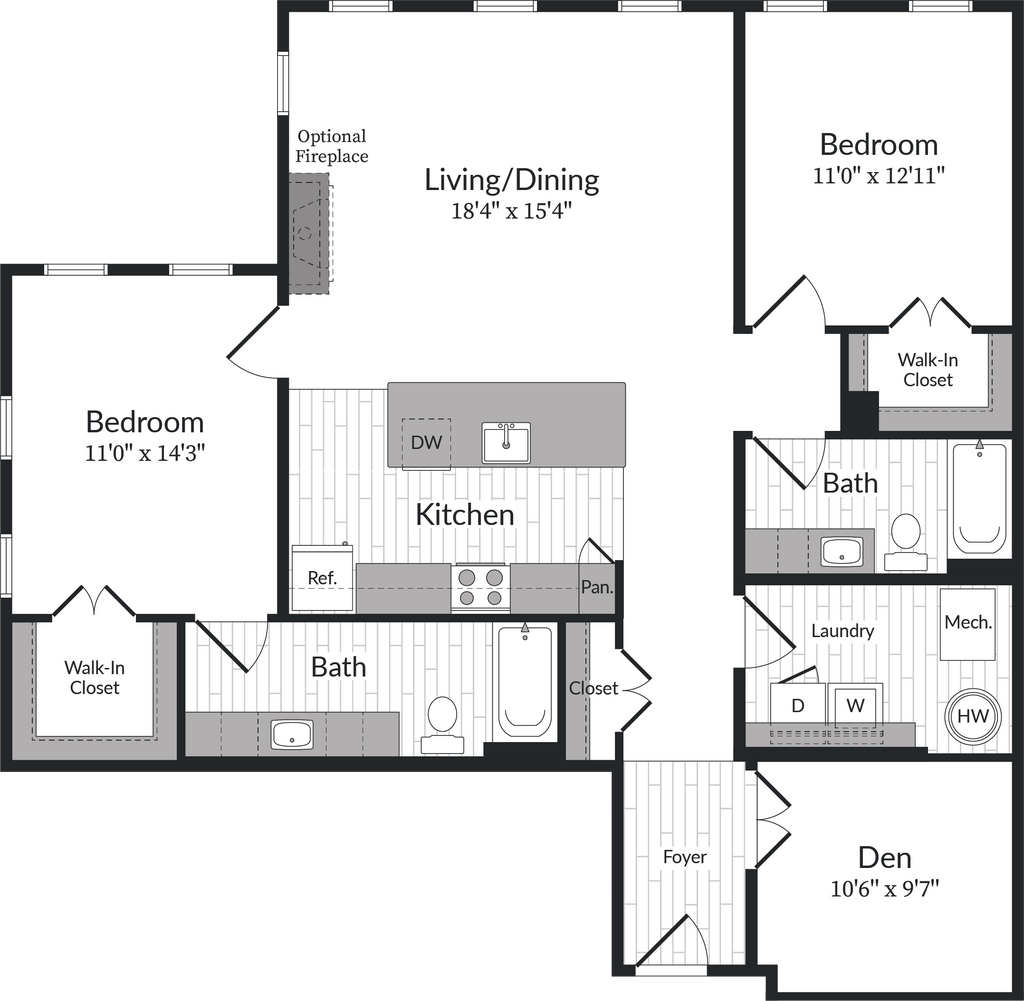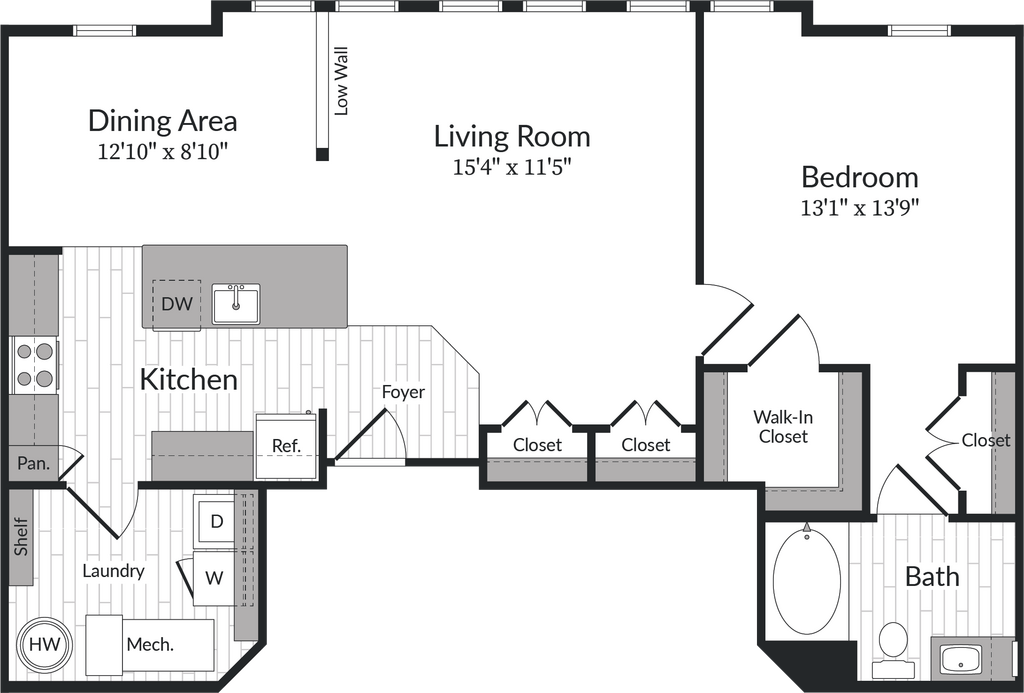 1 Bed, 1 Bath, 976 sq ftAvailable NowLargest 1 BedroomThis is the largest 1 Bedroom at this PropertyModel Gallery