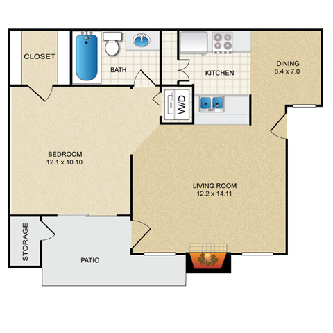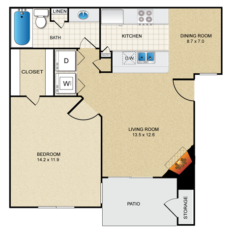 Apartment Model: A41 Bedroom, 1.5 Bath, 973 sq ftAvailable Now![]()