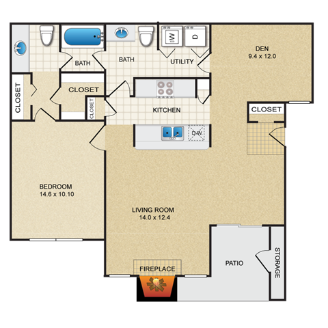 1 Bed, 1.5 Baths, 973 sq ftAvailable NowLargest 1 BedroomThis is the largest 1 Bedroom at this PropertyModel Gallery