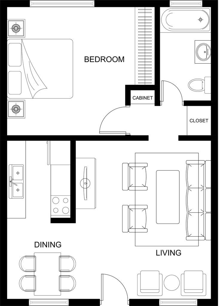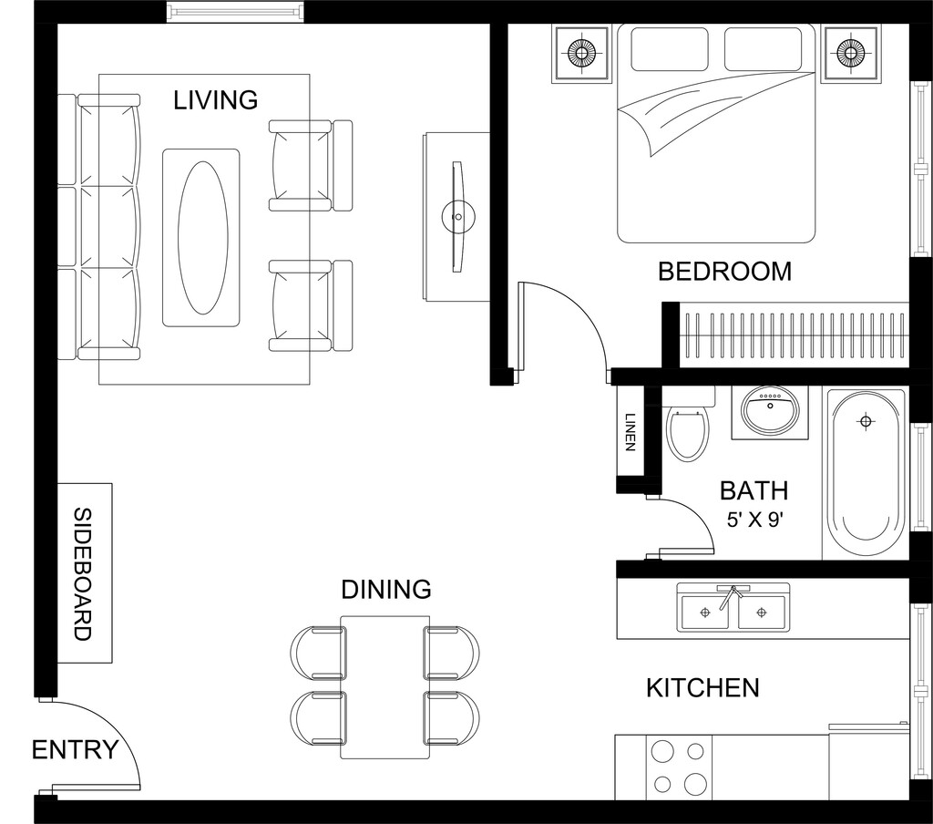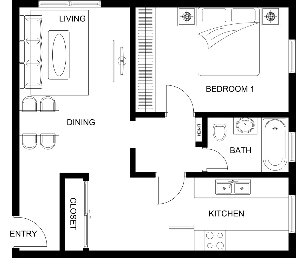 1 Bed, 1 Bath, 600-700 sq ftModel Gallery