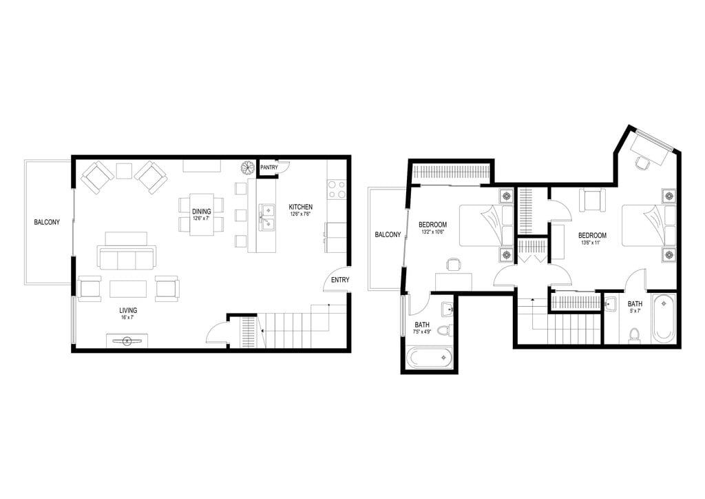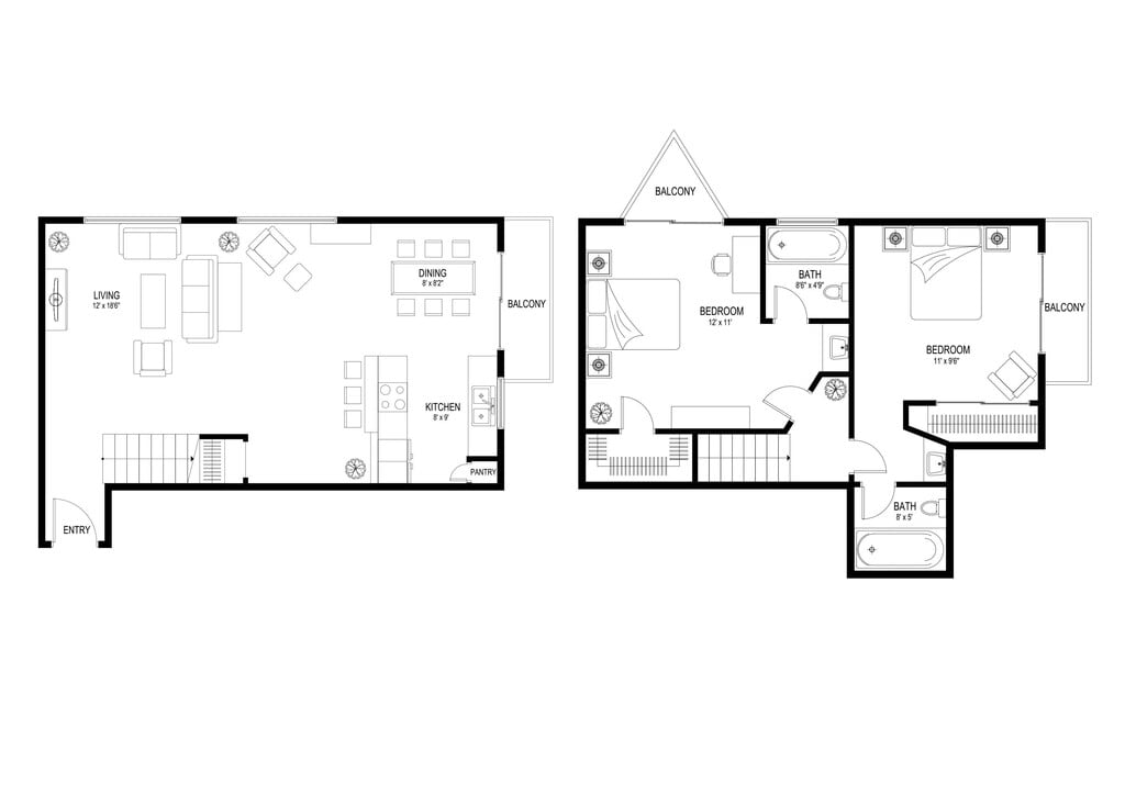 2 Beds, 2 Baths, 800 sq ftModel Gallery