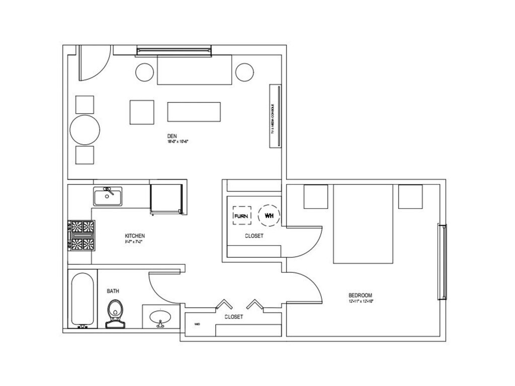 Unfurnished 1Bedroom - Floorplan 1 Apartment Unit: 20Apartment Model: Unfurnished 1Bedroom1 Bedroom, 1 Bath, 552 sq ftAvailable January 14, 20261/1 B