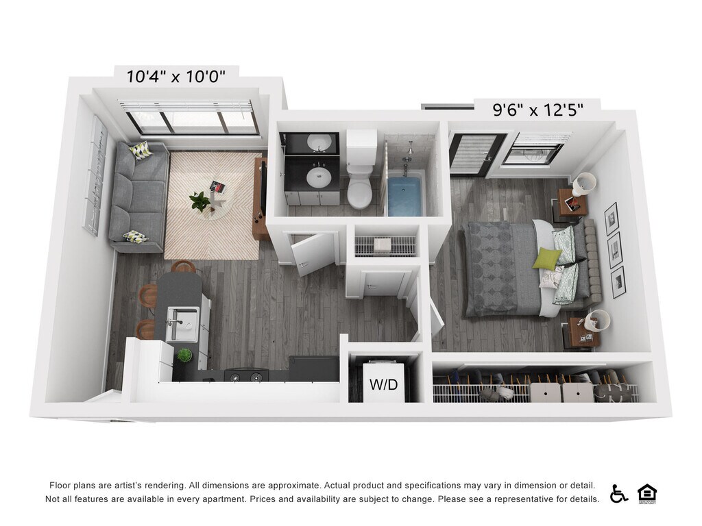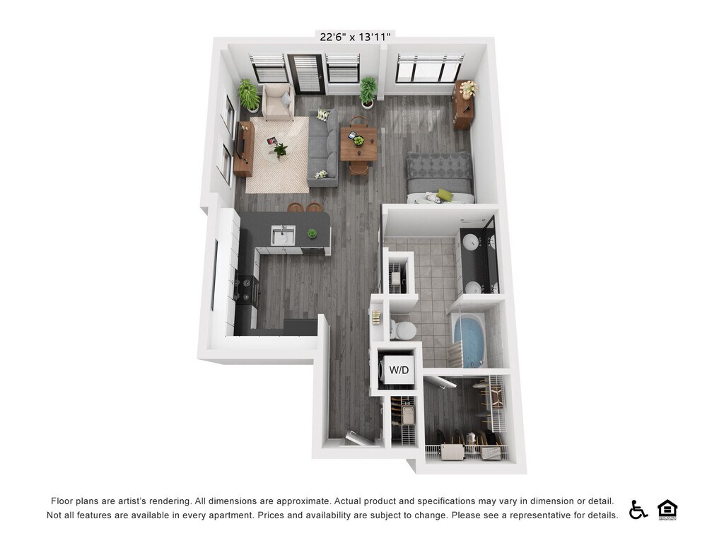 Apartment Model: E2$1,522Studio, 1 Bath, 535 sq ftAvailable NowFloor plans are artist's rendering. All dimensions are approximate. Actual product and specifications may vary in dimension or detail. Not all features are available in every rental home. Prices and availability are subject to change. Base rent is based on monthly frequency. Additional fees may apply, such as but not limited to package delivery, trash, water, amenities, etc. Deposits vary. Please see a representative for details.