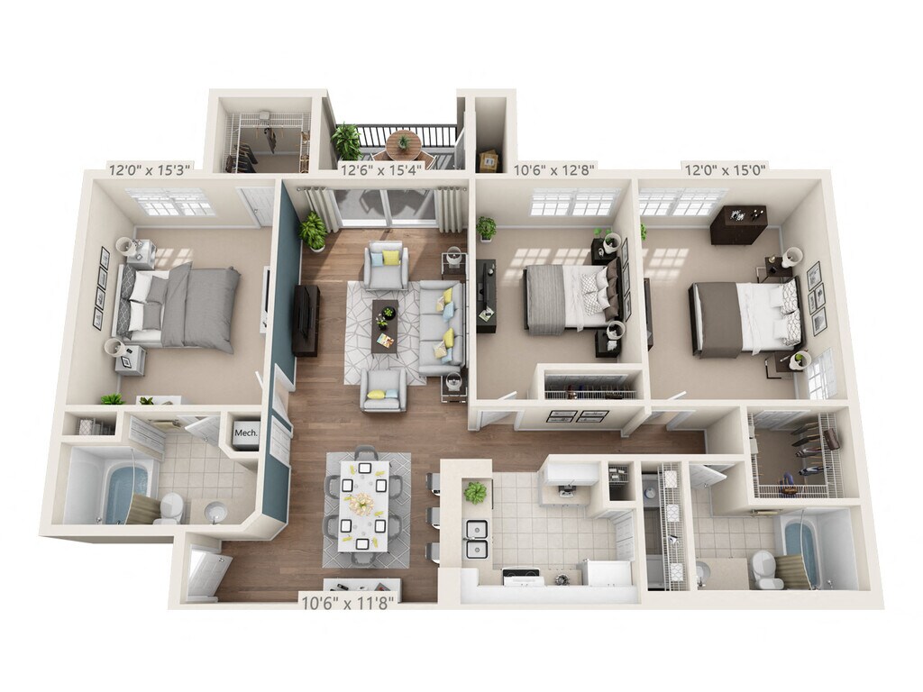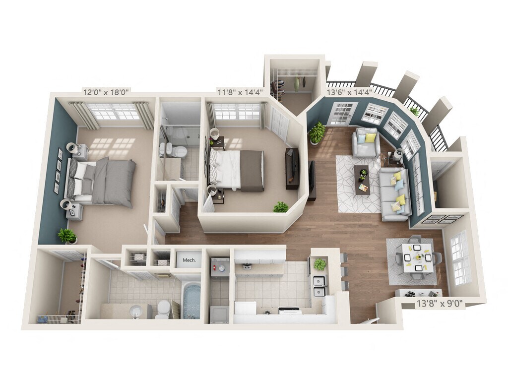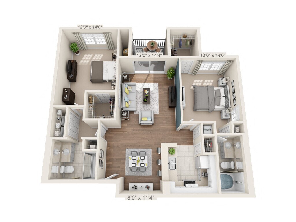1 Bed, 1.5 Baths, 1152 sq ftLargest 1 BedroomThis is the largest 1 Bedroom at this PropertyModel Gallery