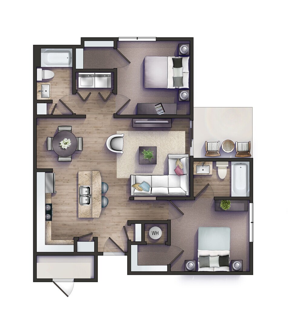 2 Beds, 2 Baths, 959 sq ftAvailable NowCheapest 2 BedroomThis is the cheapest 2 Bedroom at this PropertyModel Gallery