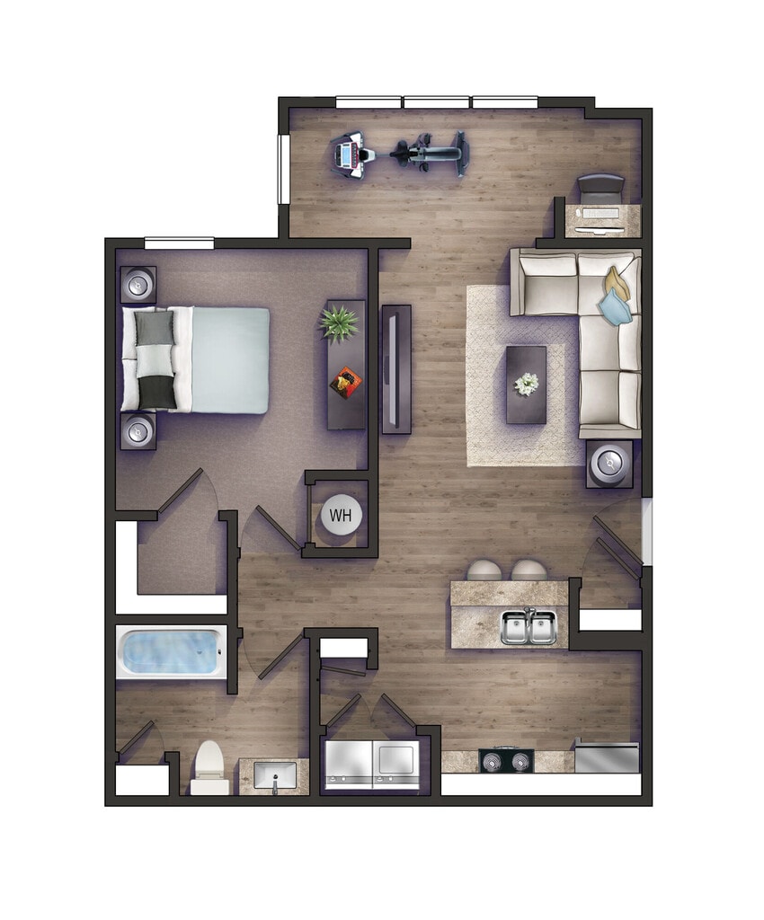 1 Bed, 1 Bath, 761 sq ftAvailable NowModel Gallery