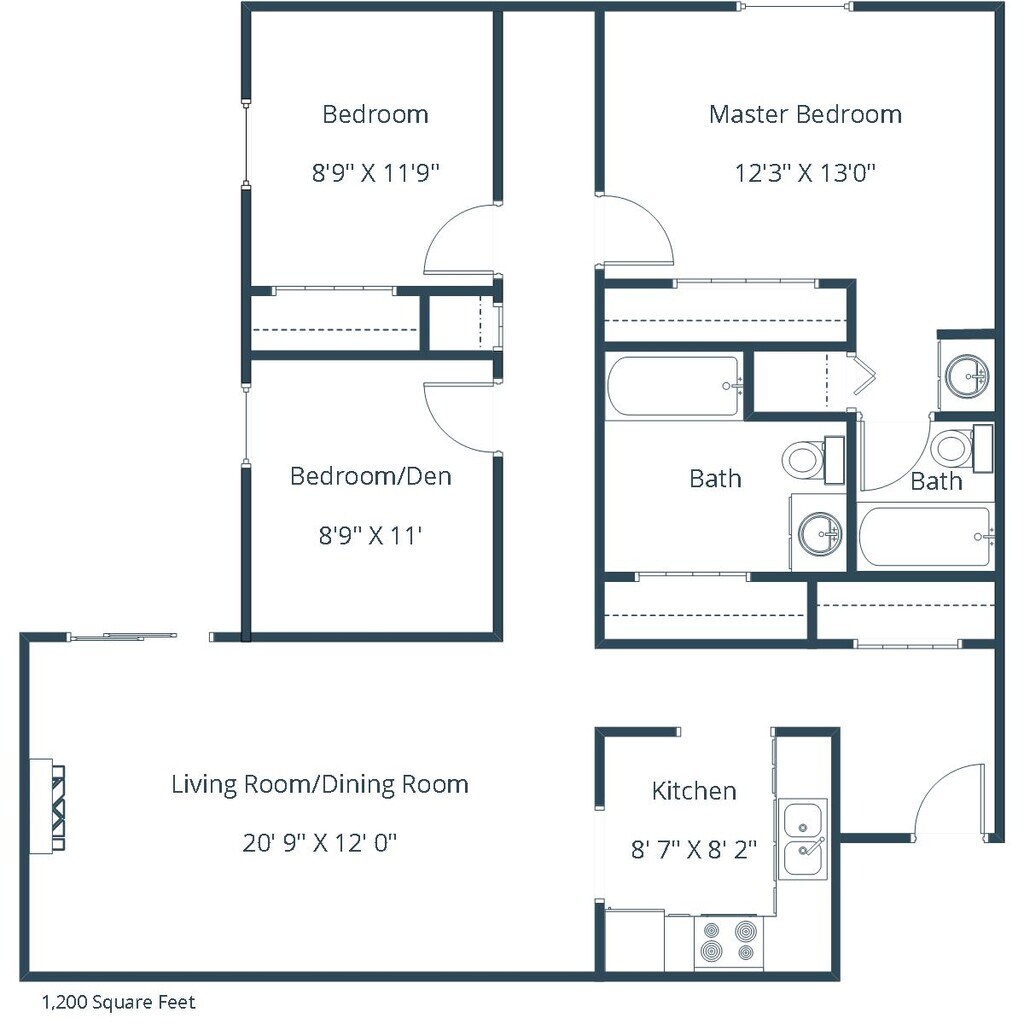 Three Bedroom 32B - Floorplan 1 Apartment Unit: 09Apartment Model: Three Bedroom 32B3 Bedroom, 2 Bath, 1200 sq ftAvailable December 1, 2025