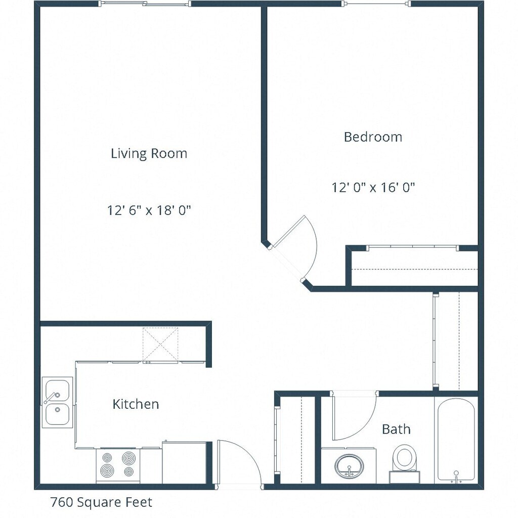 One Bedroom 11A - Floorplan 1 Apartment Unit: 13Apartment Model: One Bedroom 11A1 Bedroom, 1 Bath, 760 sq ftAvailable NowOne Bedroom 11B