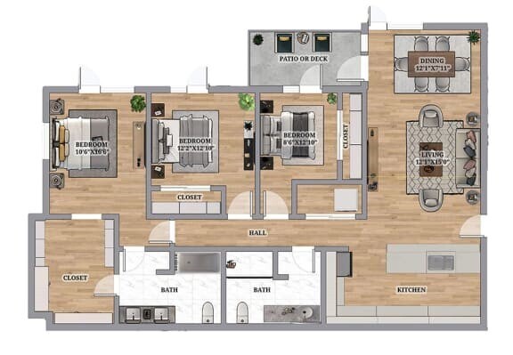 3 Beds, 2 Baths, 1289 sq ftAvailable NowModel Gallery