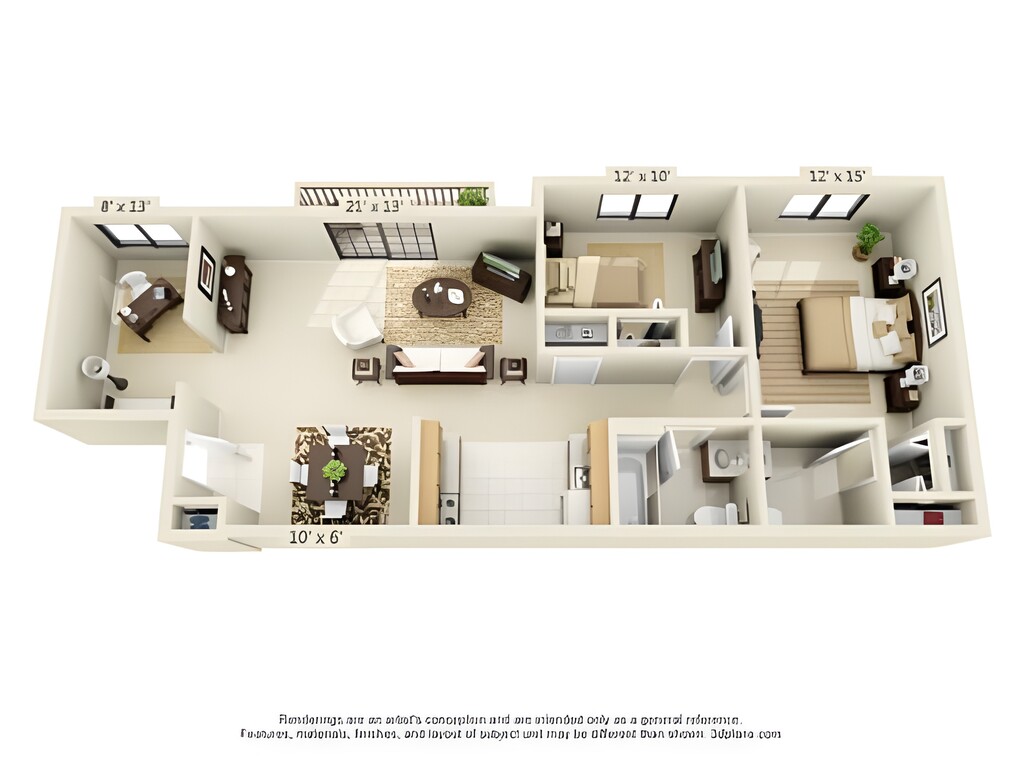 2 Beds, 1 Bath, 800-900 sq ftModel Gallery