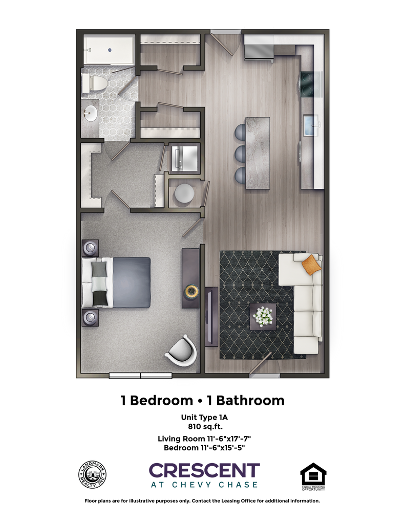 1 Bed, 1 Bath, 810 sq ftAvailable NowModel Gallery