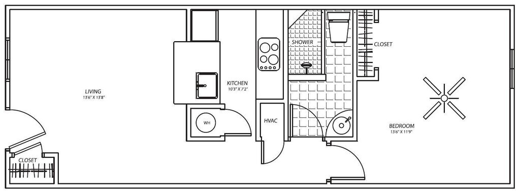 0BR/1.0BA - Floorplan 3 Apartment Unit: 1145-4527Apartment Model: 0BR/1.0BAStudio, 1 Bath, 400 sq ftAvailable Now![]()