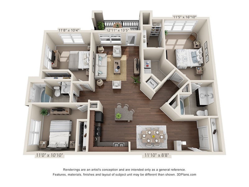 Apartment Model: 1x1-866From $1,1491 Bedroom, 1 Bath, 866 sq ftAvailable NowFloorplansPhotos![]()