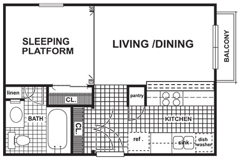 Studio, 1 Bath, 420 sq ftAvailable NowModel Gallery