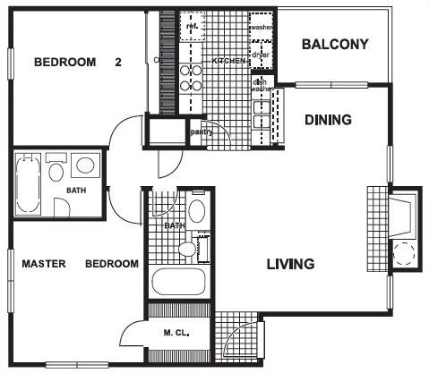 1 Bedroom - Floorplan 4 2 Bedrooms
