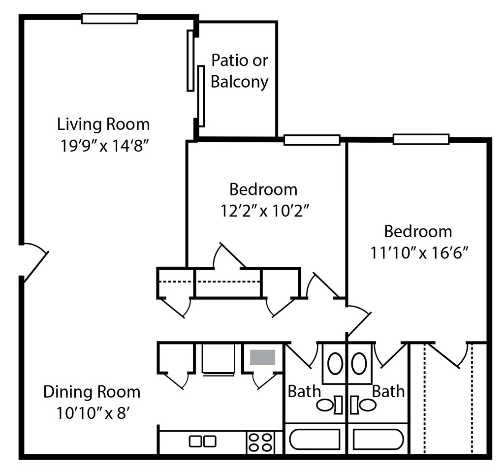 2 Bedroom, 2 Bath 950SqFt - Floorplan 2 2 Bedroom, 2 Bath 1,240SqFT