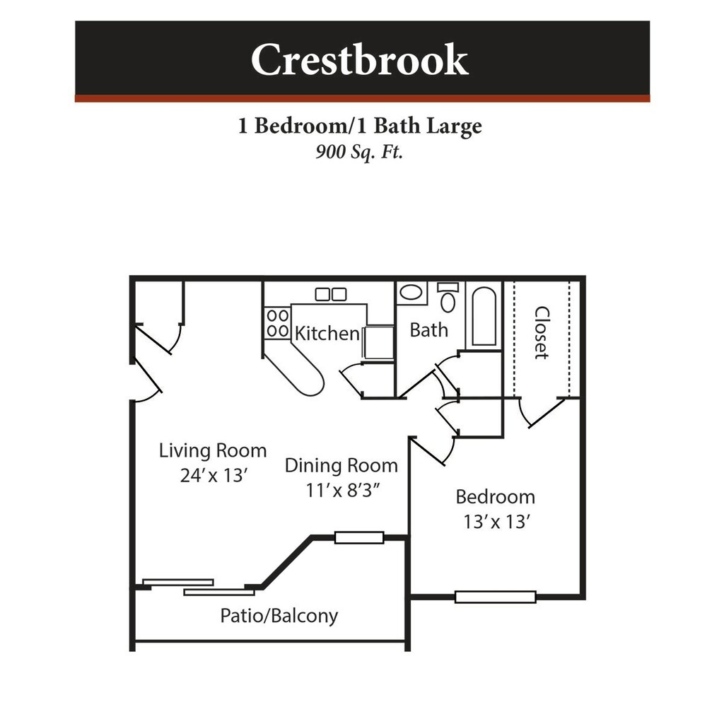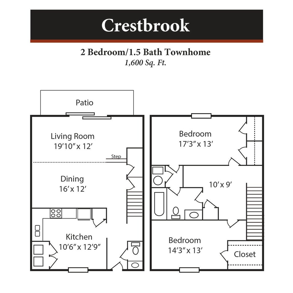 Crestbrook Apartments & Townhomes offers 1 to 2 Bedroom apartments having 800–1,600 sqft. Here is the current pricing and availability: