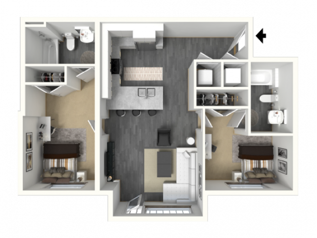 2 Beds, 2 Baths, 751 sq ftAvailable NowModel Gallery