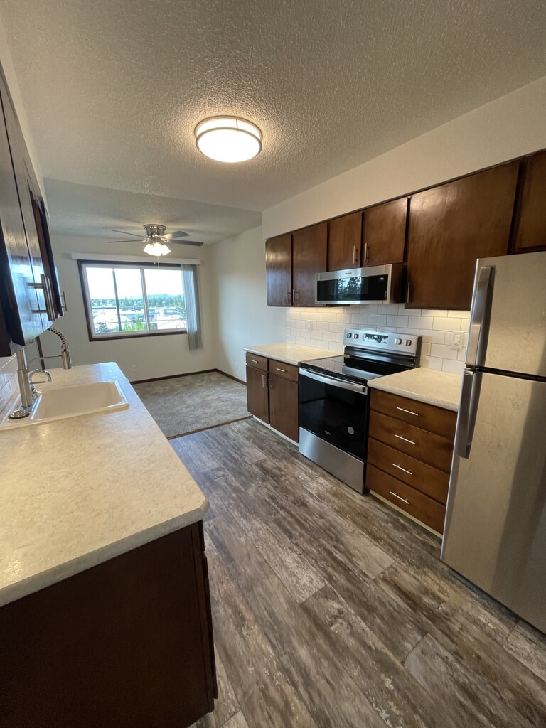 This NON-SMOKING two bedroom apartment is located near Grand Central Retail shopping center. The apartment building has 17 units located on a quit hillside. Units feature new carpet, new linoleum floors through out the kitchen and bathroom. Kitchen hosts a new stove, microwave, and dishwasher along with freshly installed Wilsonart countertops. Limited covered parking is available for this unit, and there is no street parking available. This upper unit has a partial view. Water and garbage are included in the rent. There is a laundry room on site with coin operated washers and dryers. There is also a storage locker included with this unit. Please call Ella for more information about fees or to set up a showing. Please don't fill out an application online, we process the applications ourselves.