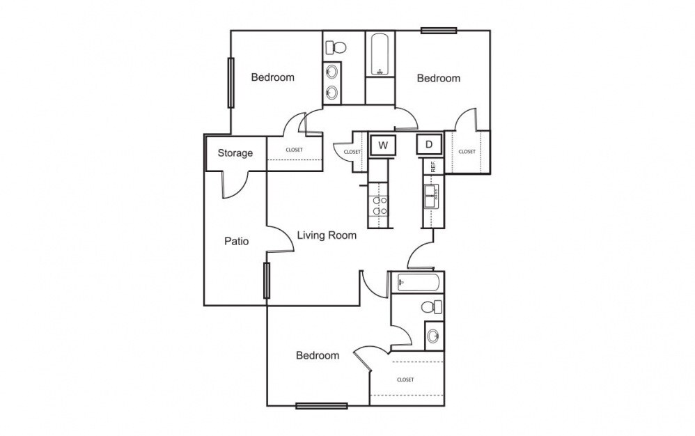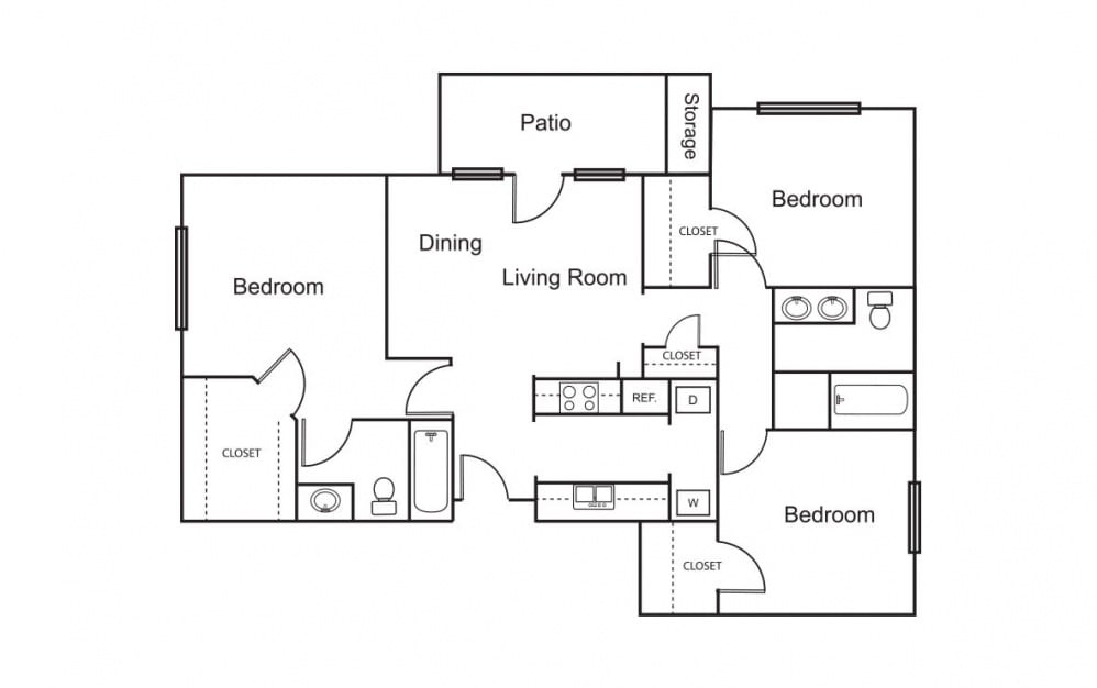 2 Bedroom / 2 Bath - Floorplan 1 3 Bedrooms