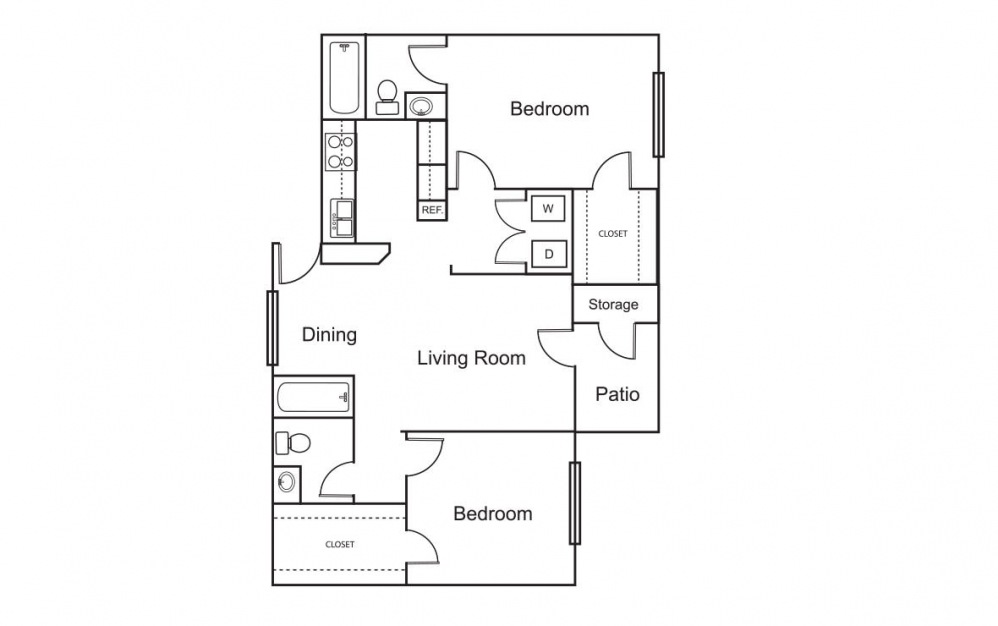 2 Bedroom / 2 Bath - Floorplan 1 2 Bedroom / 2 Bath