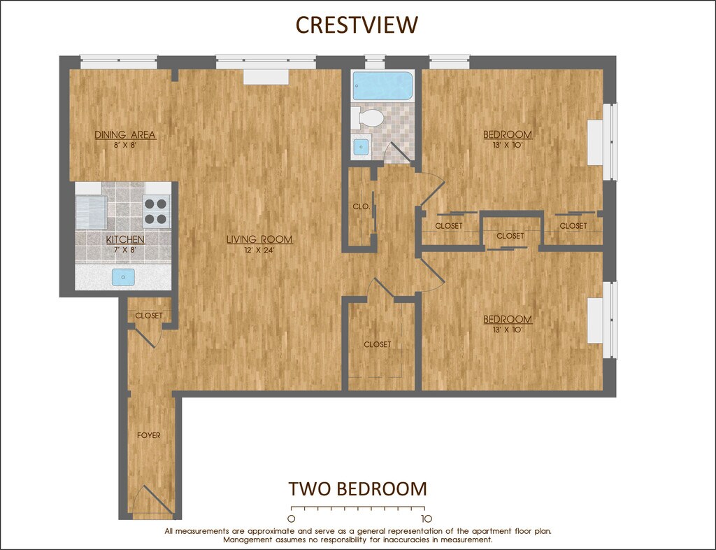 Two Bedroom - Floorplan 1 Apartment Unit: 001-103Apartment Model: Two Bedroom2 Bedroom, 1 Bath, 762 sq ftAvailable Now2 Beds, 1 bath