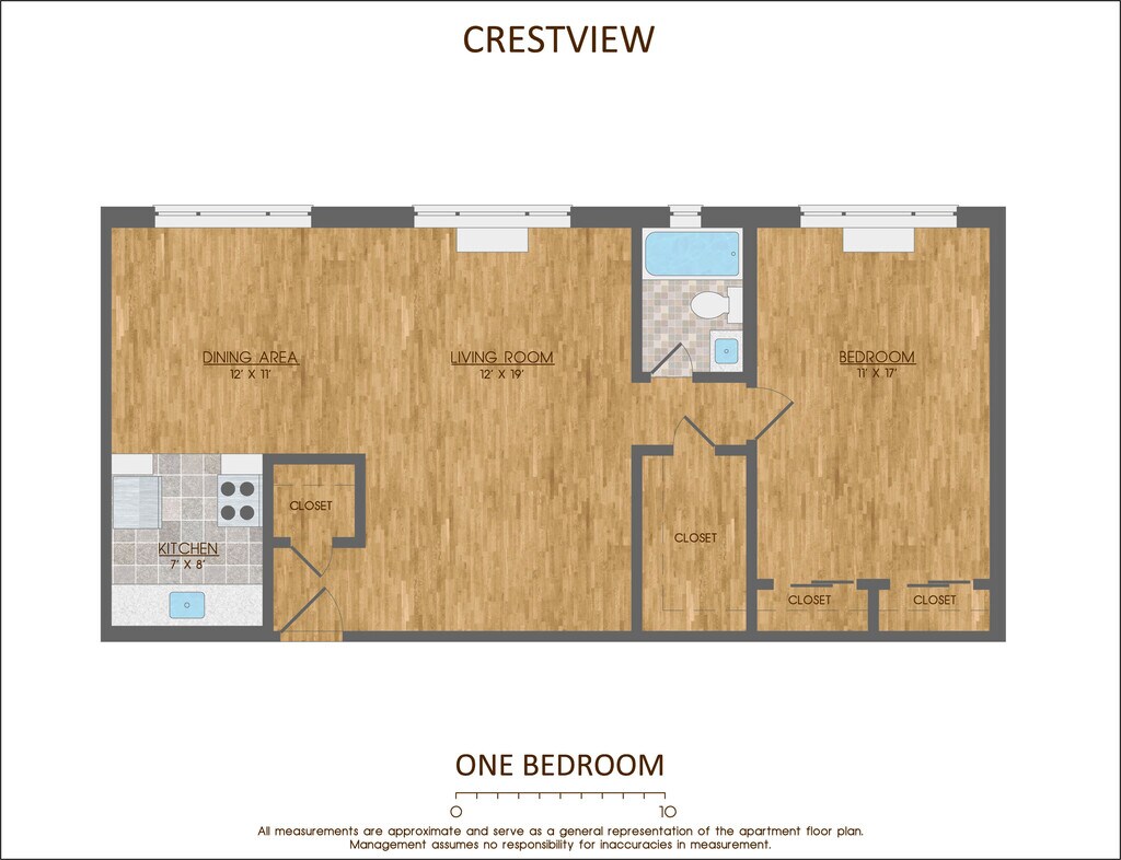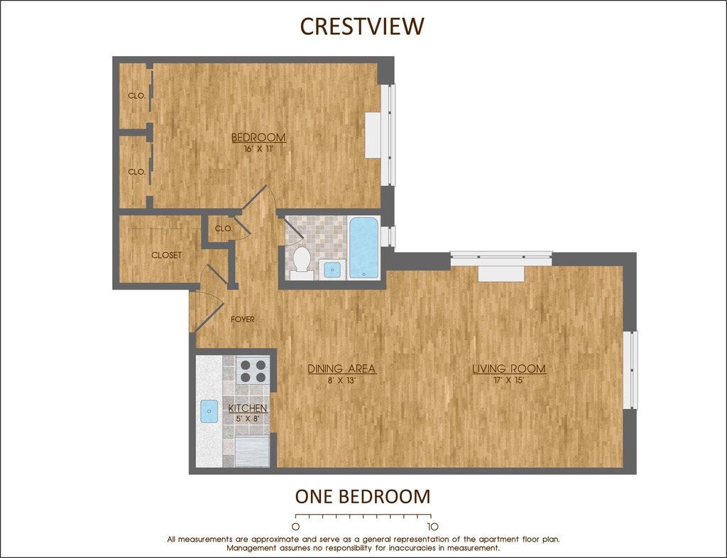 One Bedroom-Large - Floorplan 1 1 Bed, 1 bath