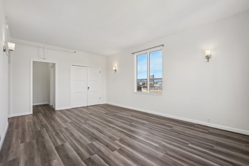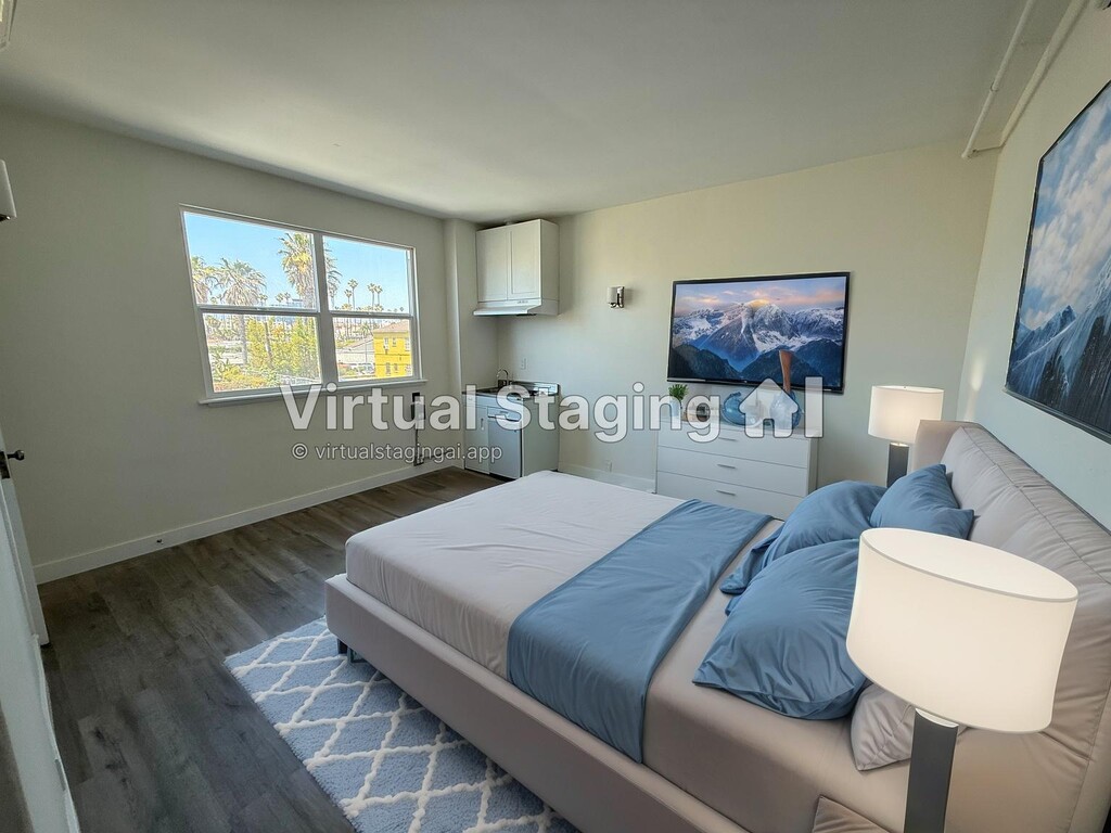 Historic building in downtown Los Angeles. Close to the 10 & 110 Freeways, near Staples Center, L.A. Live, and The Convention Center. 3 -5 Minute Drive to all Downtown attractions and Freeways Units are Bright, spacious with views of Hollywood Hills, Century City or Downtown! The building has Large One Bedroom – One Bath & Studio One Bath Units. Lots of Closet Space, Vanity, Makeup Table, and built-in drawers. Very Large Windows. Hardwood Floors. Individual thru the window/wall AC & Heat Units Security Cameras through out the building. Controlled Access – Telephone & Keycard System for Entry. High speed internet is available at the building through Spectrum & AT&T. Coin & App operated (no need for coins) Laundry Machines on Premises. Parking – Parking is available in our two lots, but is limited to our larger Units ($1,599 and over). PLEASE ASK FOR DETAILS WHEN YOU CALL. Gated Surface Lot - $115/Mo. (Limited Availability) Underground Gated Parking - $150/Mo. (Limited Availability) Minimum Deposit: Equal to One Month's Rent. We accept cats and small dogs, subject to weight and breed restrictions