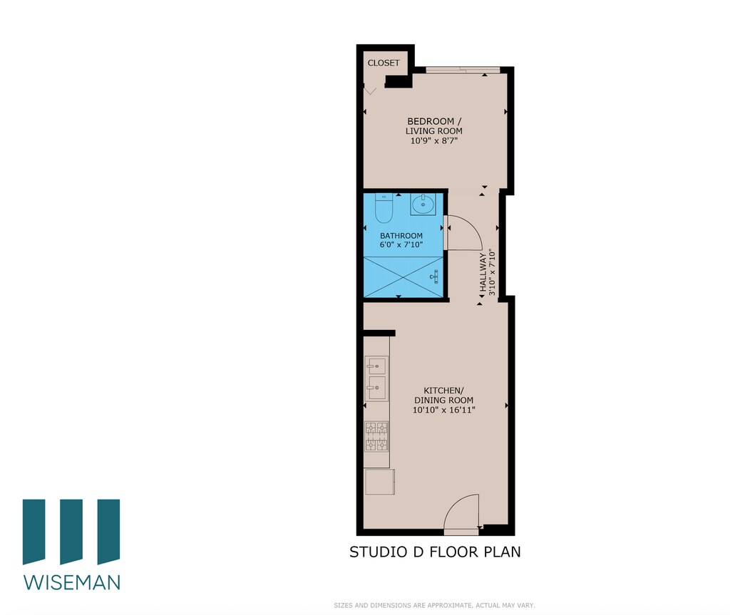 Studio D - Floorplan 1 Apartment Unit: 106Apartment Model: Studio DStudio, 1 Bath, 410 sq ftAvailable Now![]()