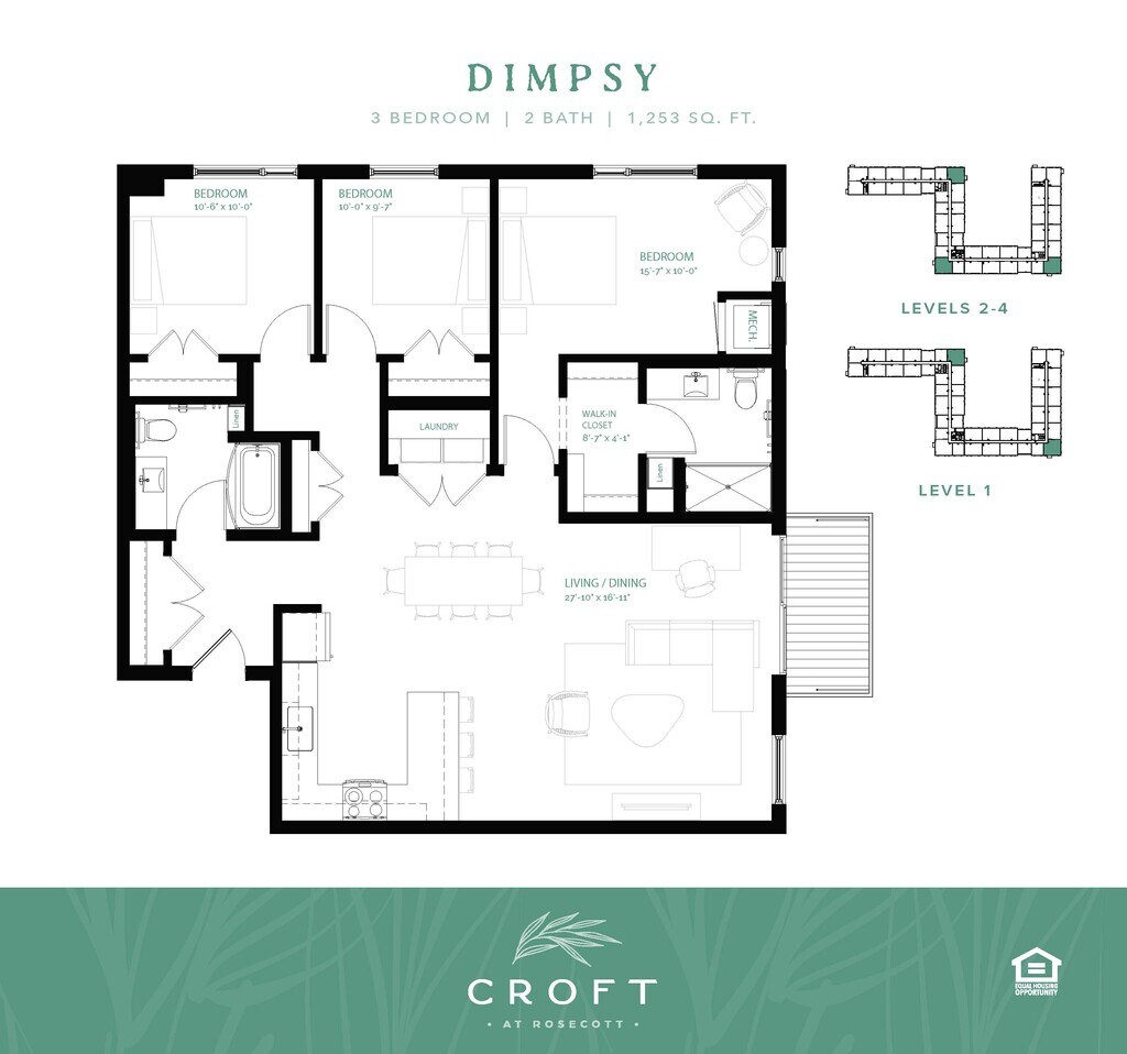 3 Beds, 2 Baths, 1253 sq ftLargest 3 BedroomThis is the largest 3 Bedroom at this PropertyModel Gallery
