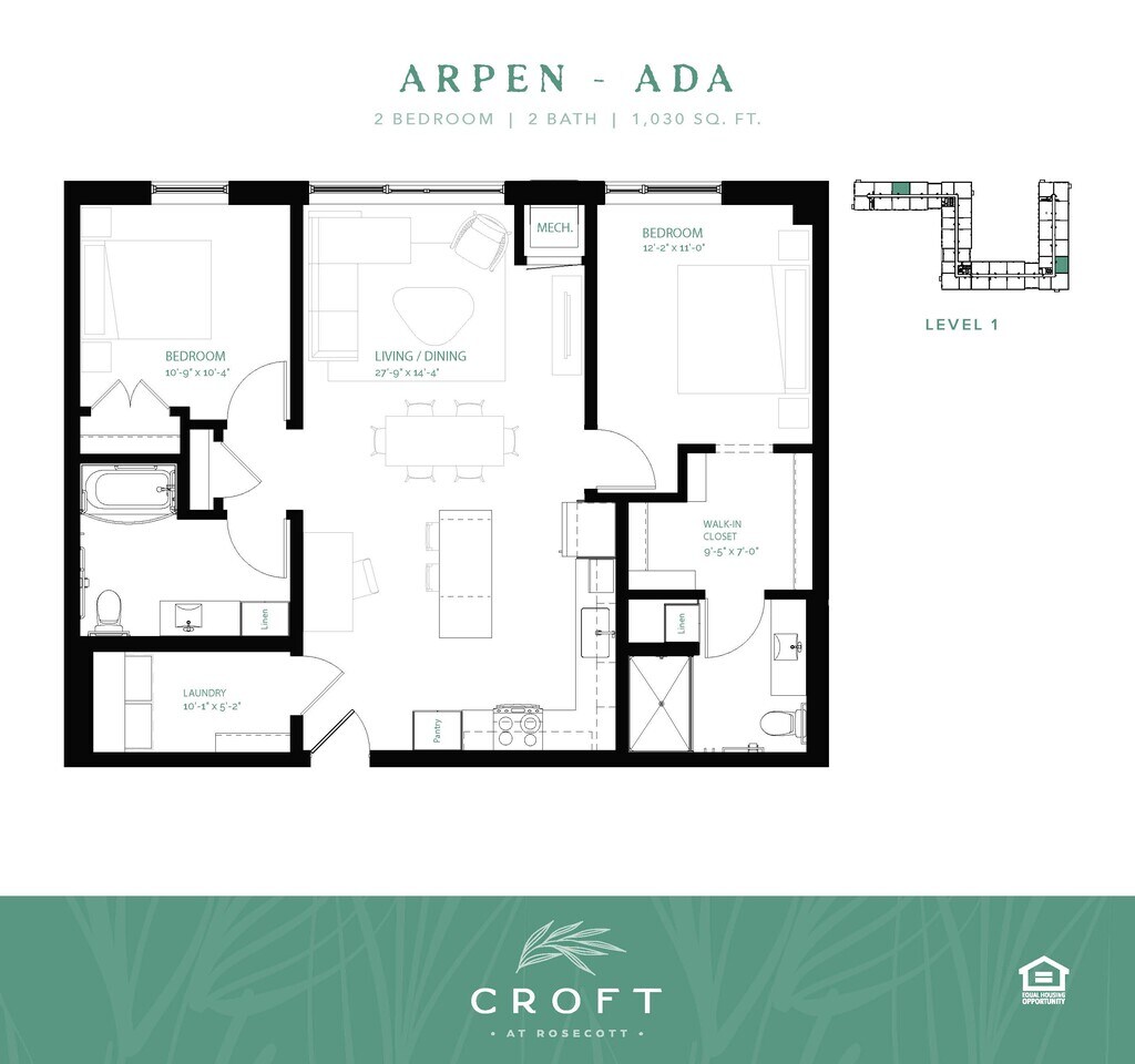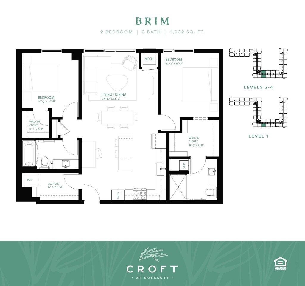 2 Beds, 2 Baths, 1032 sq ftLargest 2 BedroomThis is the largest 2 Bedroom at this PropertyModel Gallery