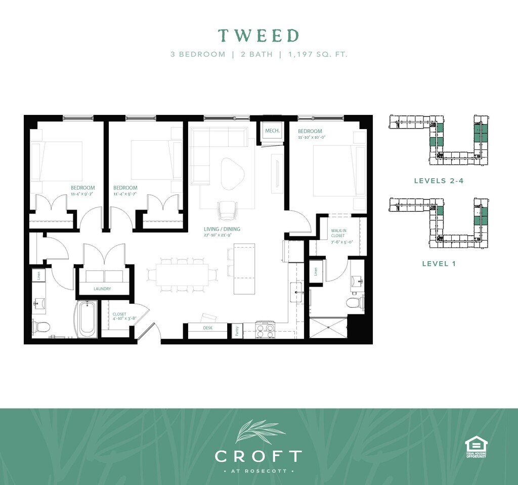 Availability Date Unit Sq Ft Unavailable Tweed 1197 sq ft Apartment Model: Tweed3 Bedroom, 2 Bath, 1197 sq ftUnavailable![]()
